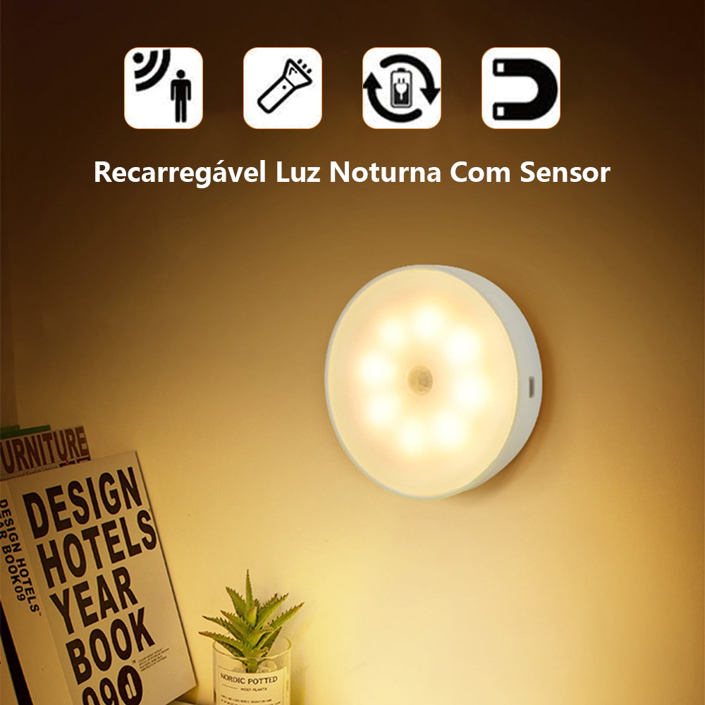 Kit1/Kit2/Kit5 Luminárias Luz Noturna LED Sem Fio Com Magnético Sensor Presença Recarregável Quente e Fria Lâmpada USB