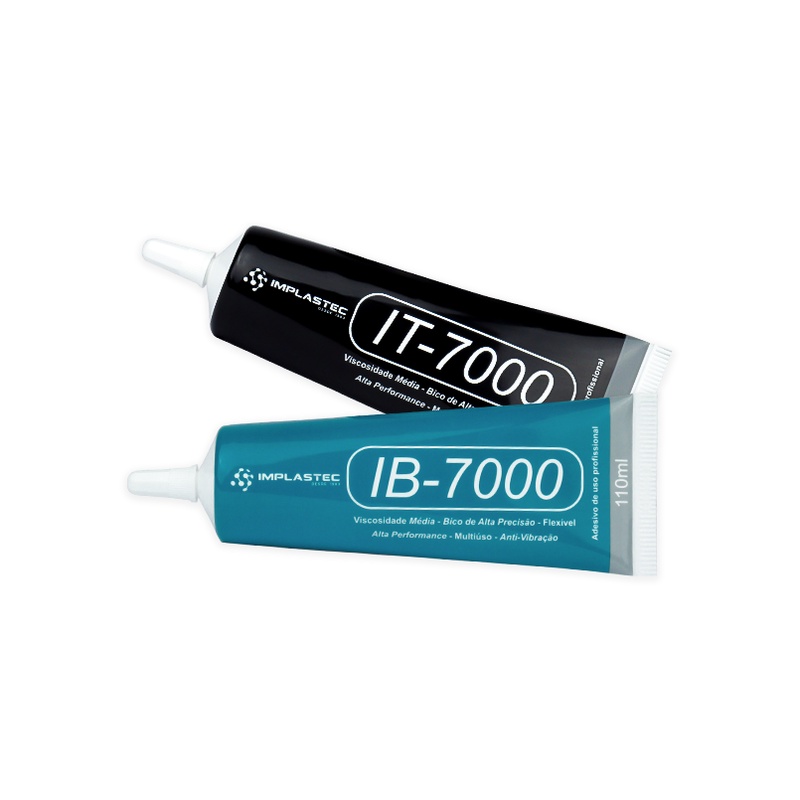 Kit Cola Adesiva Multi Uso Implastec B-7000(IB-7000) + T-7000(IT-7000) 110ml para Fixar Telas Display Touch Celular