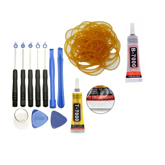 KIT TROCA DE TELA COM COLA B7000 + T7000 JOGO DE CHAVES + ELÁSTICOS