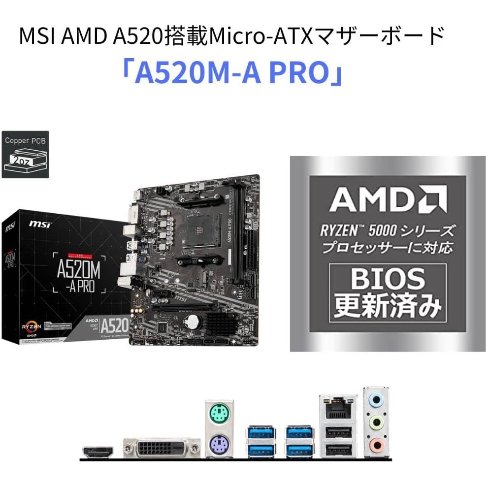Direto do Japão Placa-mãe MSI A520M-A PRO [Compatível com Ryzen Série 5000 (AM4)] Micro ATX [Equipado com AMD A520] MB5136 Novo