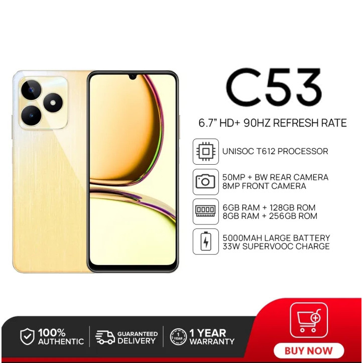 2025 Realme C53 Smartphone 8GB + 256GB 6.7 HD + 90Hz Display 50MP AI Câmera Nova