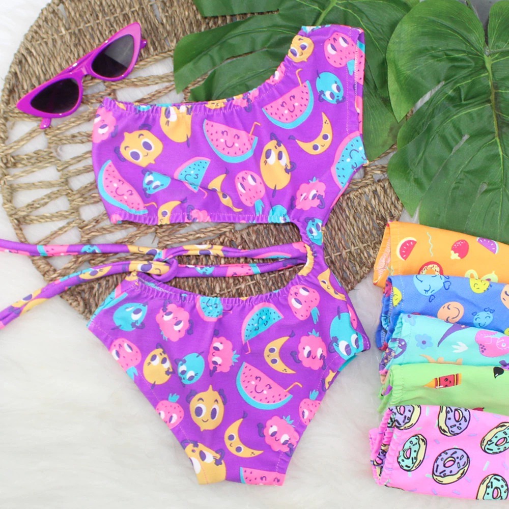 Kit 2 biquini maiô ombro só criança alça amarração decote
