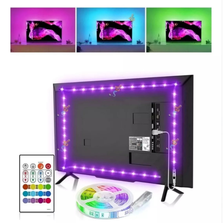 Kit Luz Fita De Led Usb Colorido Para Tv Monitor Copa Natal