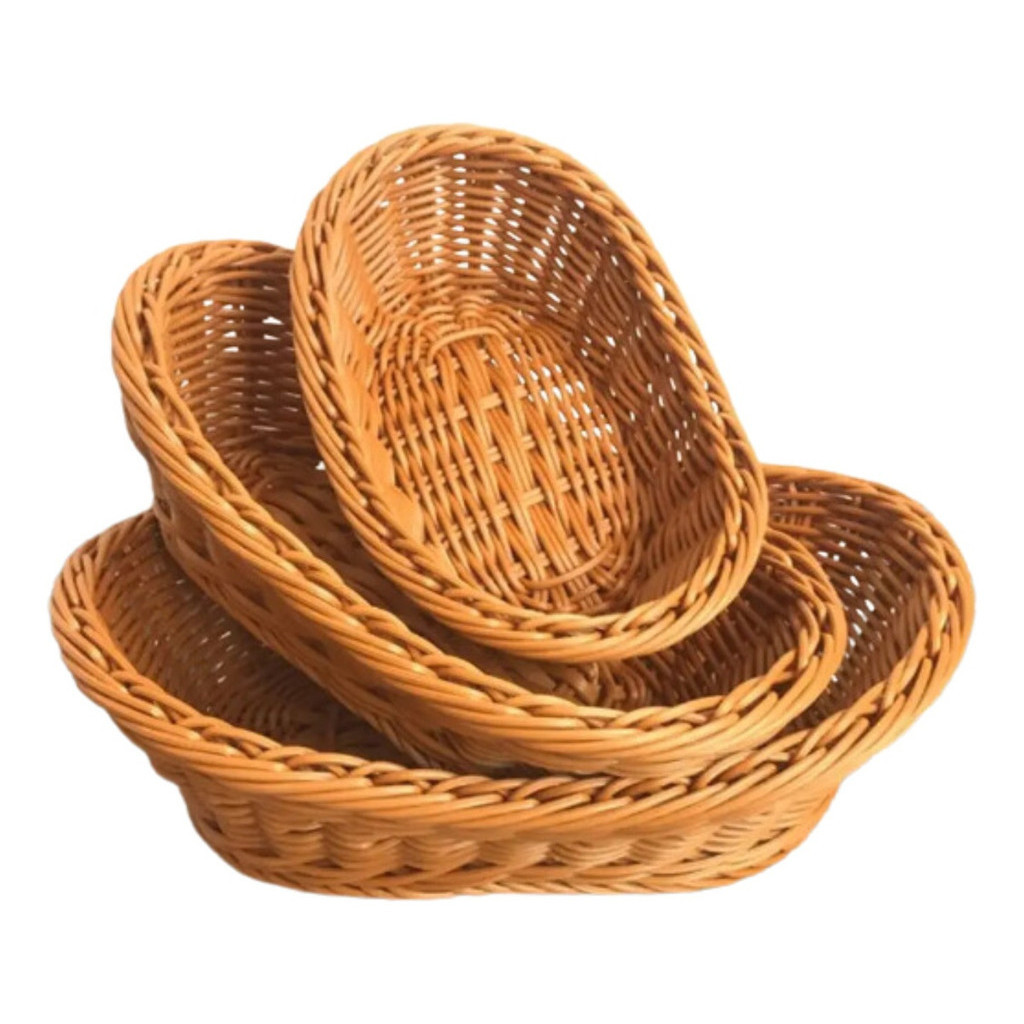 Cesta Vime Ratan Plastico Oval Mesa Cesto Para Pao 3 Peças