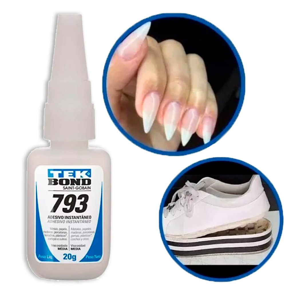 Kit Cola Instantânea Adesiva 793 TekBond 20g Metal Madeira Porcelana Borracha Cortiça Papel Acrigel Unhas Tips Postiça