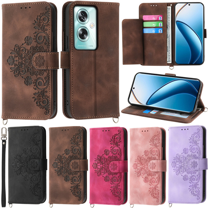 Invólucro Retro Para O Oppo A79 5G A18 A38 A58 A78 A17 4G A3 Pro Reno 11F 5G Realme 12 + C67 C53 11 4G 11X Carteira Com Padrão De Flores De Couro De PU Macio