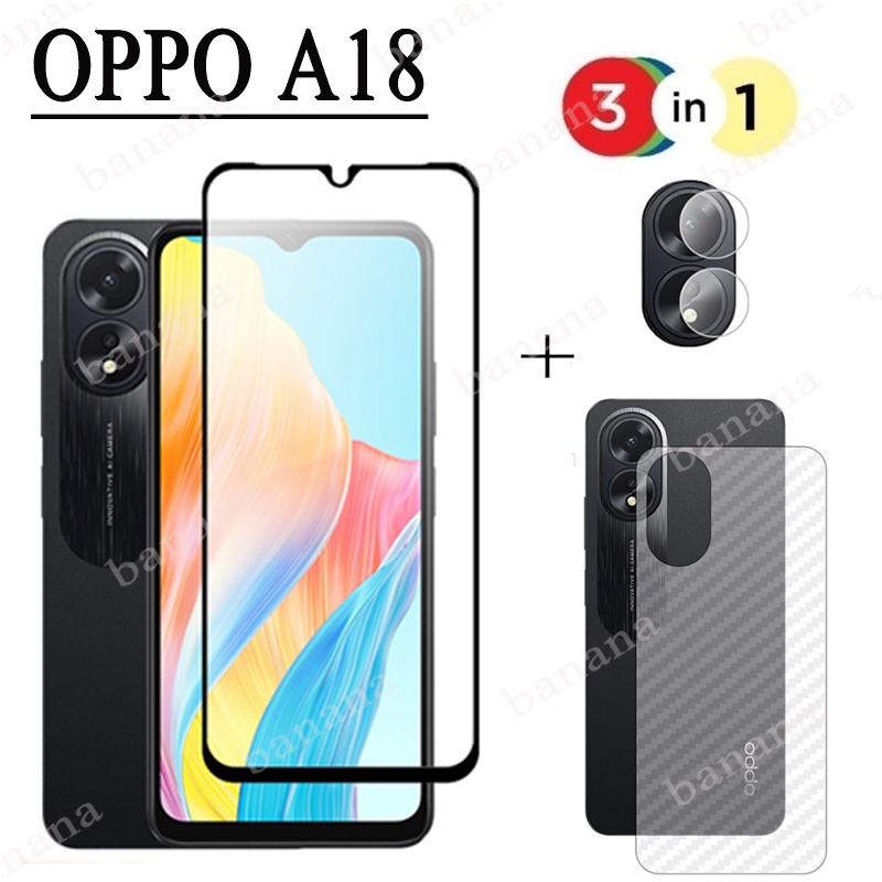 OPPO A18 Filme De Cobertura Completa De Vidro Temperado Para A38 A58 A78 A98 5G A18 A17 A17k A16 A16k A15 A15s Reno 10 Pro + 8T 5G 3 Em 1 Protetor De Tela Da Lente Câmera