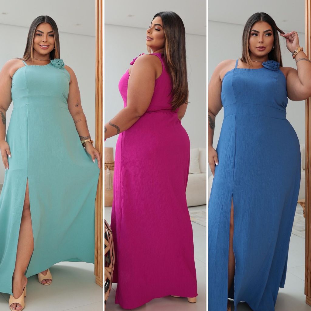 Vestido Longo Plus Size Curvy Solto Fenda Lateral Duna Tendência Tamanho Grande Instagram TikTok