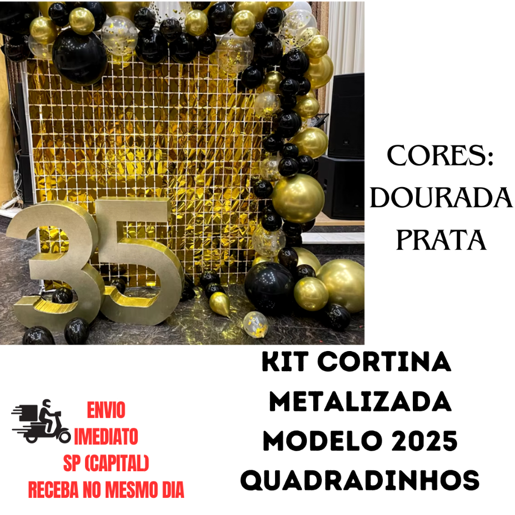 Kit 4 Cortina Metalizada Prata Dourada + Balão 2026 Grande Decoração Ano Novo 70cm/40cm