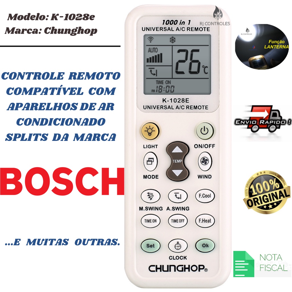 Controle Remoto Universal para Ar Condicionado Bosch e muitas outras marcas