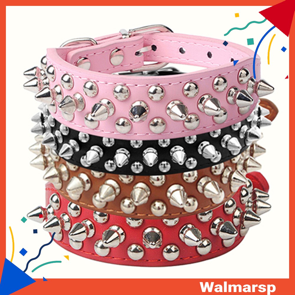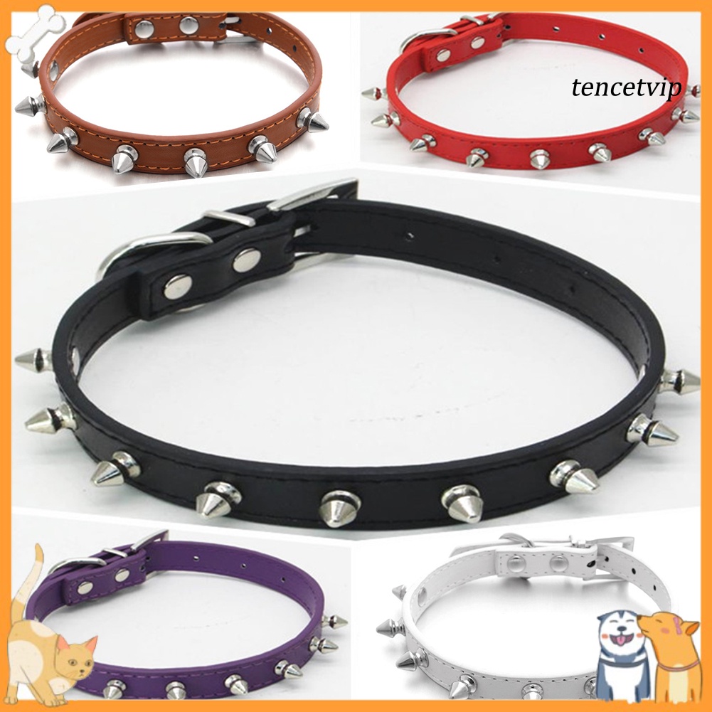 Coleira De Couro Sintético Ajustável Com Rebites E Spikes Para Cachorro / Gato