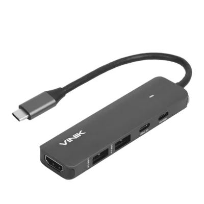 Adaptador Hub USB Type C, 5 Em 1, 2x USB 3.0 + HDMI 4k, Type C Pd 100w, Type C Dt Vinik - Hv51c