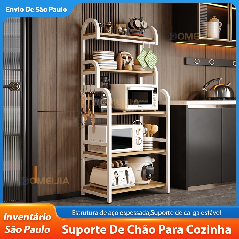 Prateleira Organizadora Cozinha Estante De Livros Multiuso Rack Microondas 5 Andares C60 X L40 X A152cm