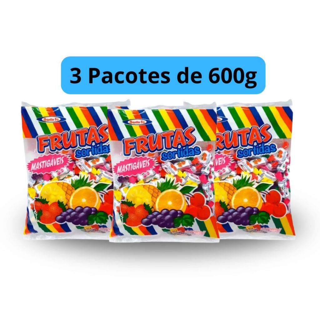BALA MASTIGAVEL FRUTAS SORTIDAS 500G SANTA FE - KIT COM 03 UNIDADES