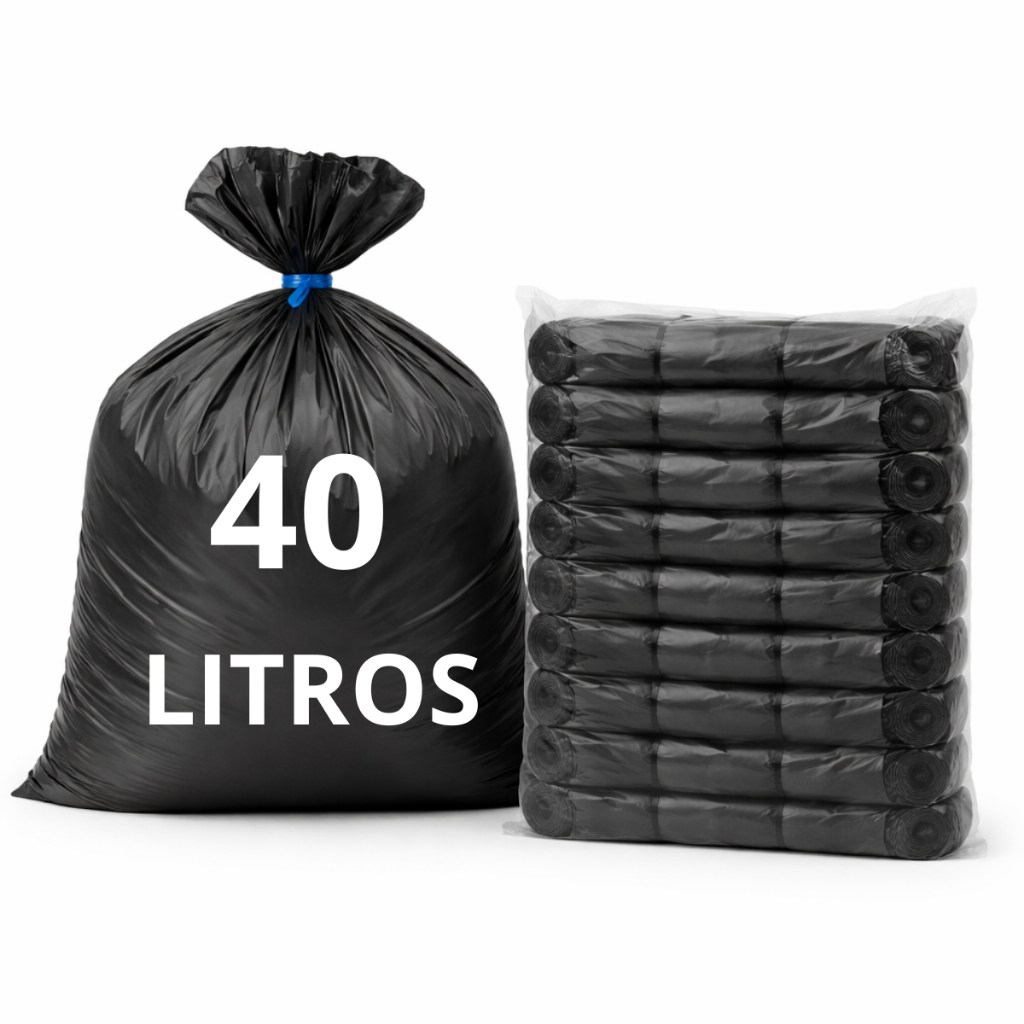 Saco de Lixo 40 litros Preto Alta qualidade pacote com 100 unidades