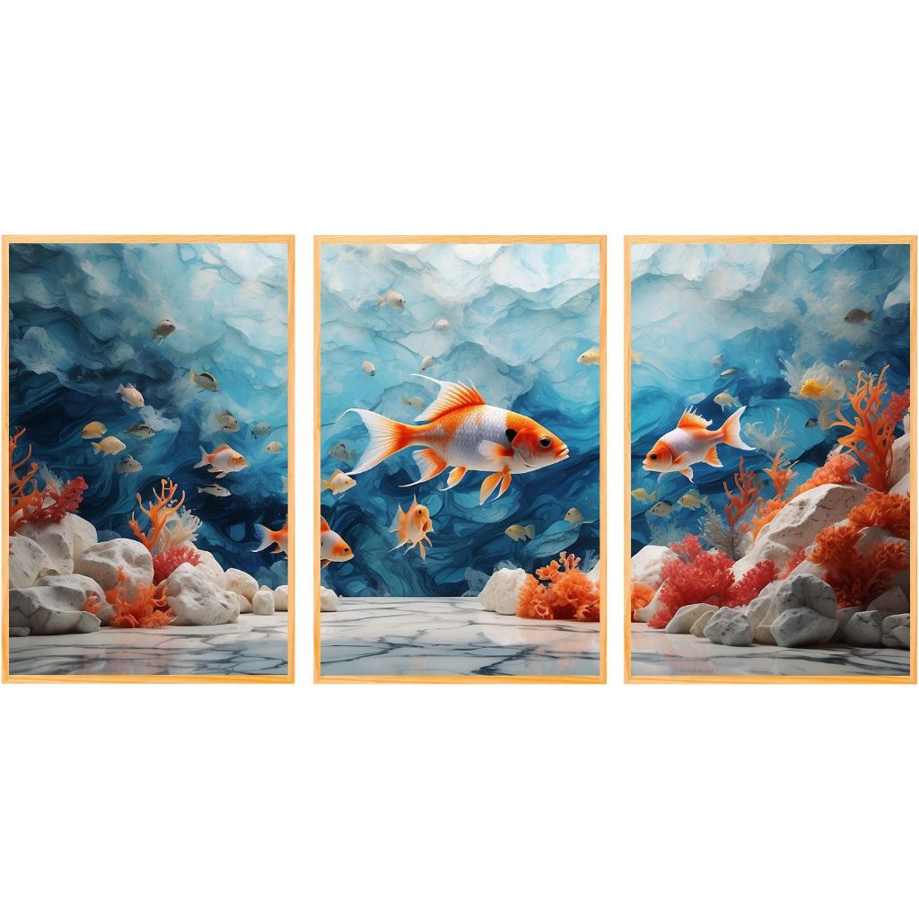 Quadro Decorativo Paisagem Praia Mar Por do sol com Moldura 3 peças