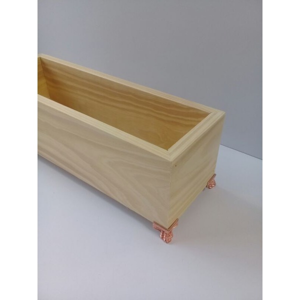 floreira de madeira pinus 30x9x10 com pé de metal rosa