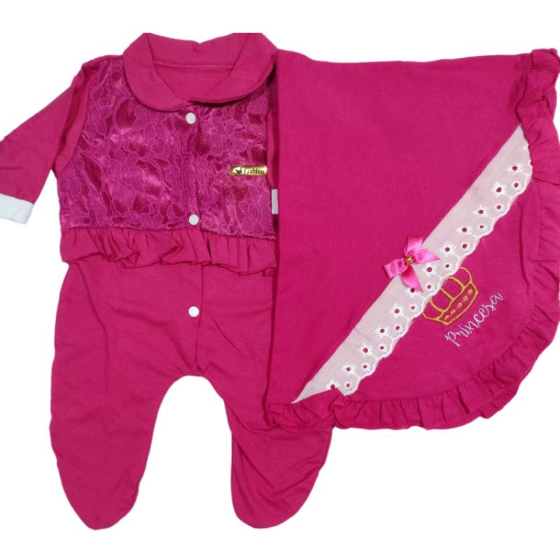 Kit macacão com manta infantil menina bebê barato promoção luxo barato
