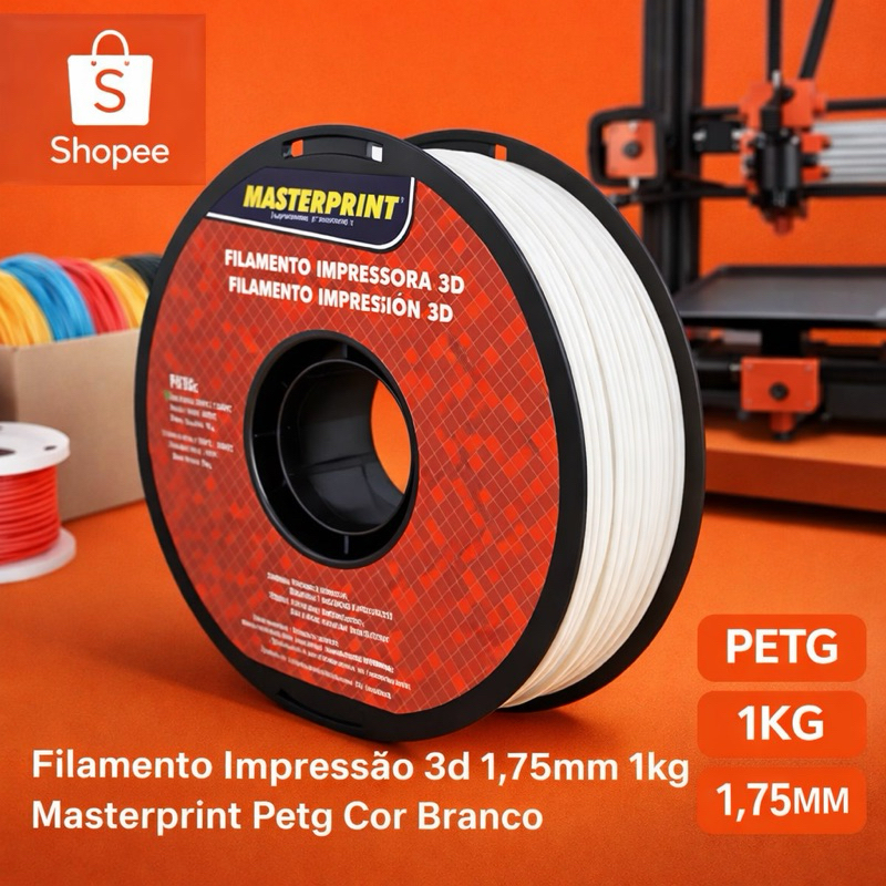 Filamento PETG Branco 1kg 1,75mm Masterprint Para Impressora 3D Alta Qualidade
