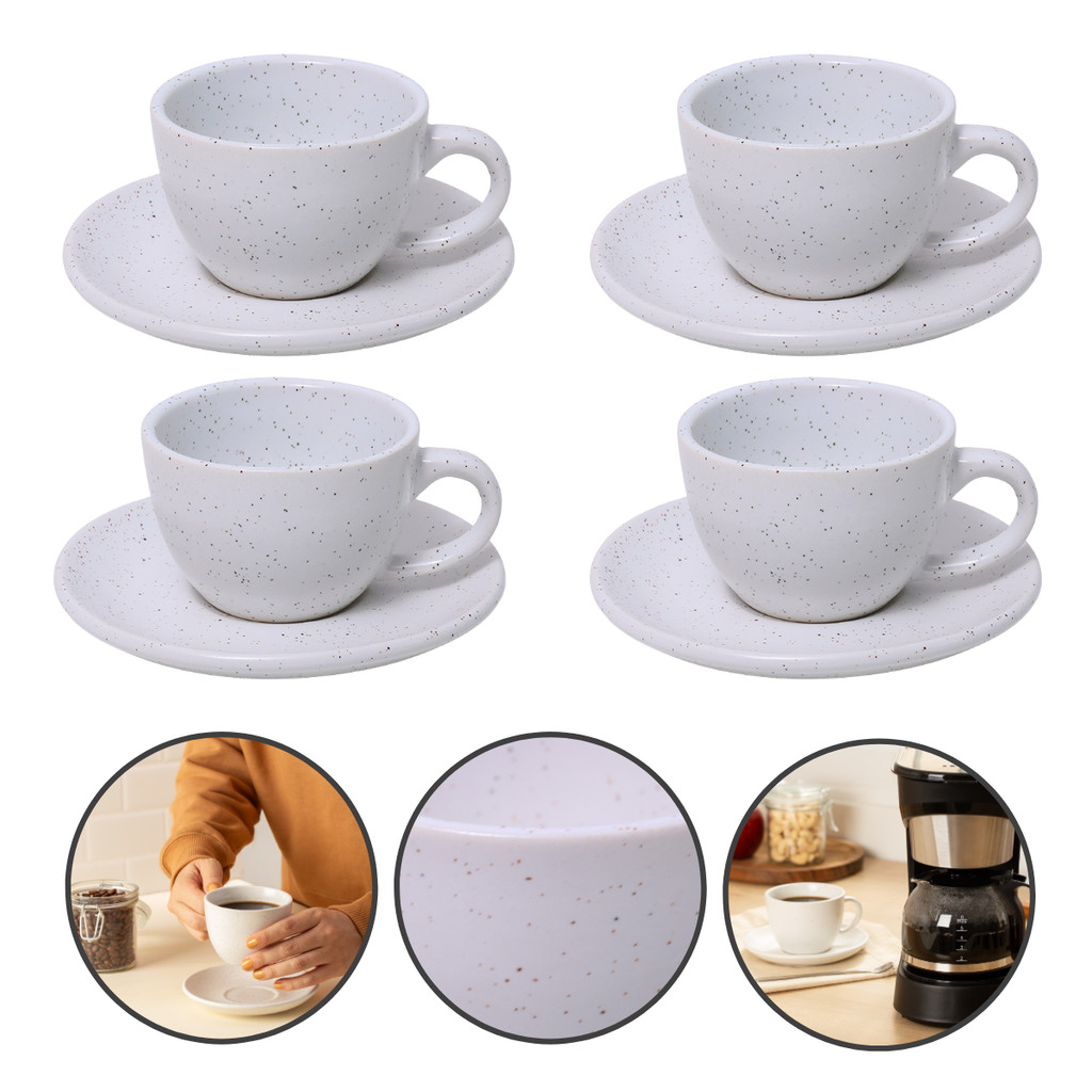 Conjunto 4 Xícaras Café/Chá com Pires Cerâmica 210ml Premium