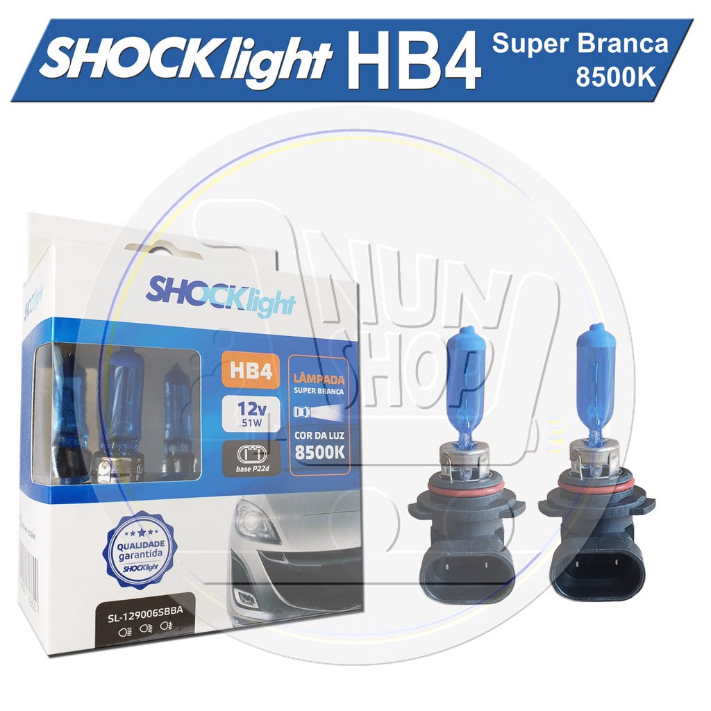 Par Lâmpadas Super Branca Hb4 Shocklight 51W 8500K 12V - Hb4