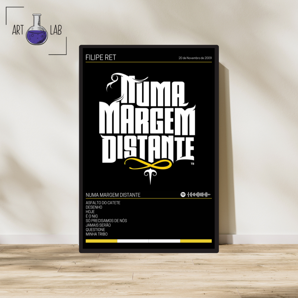 Quadro decorativo álbum FILIPE RET Numa margem distante moldura e vidro spotify