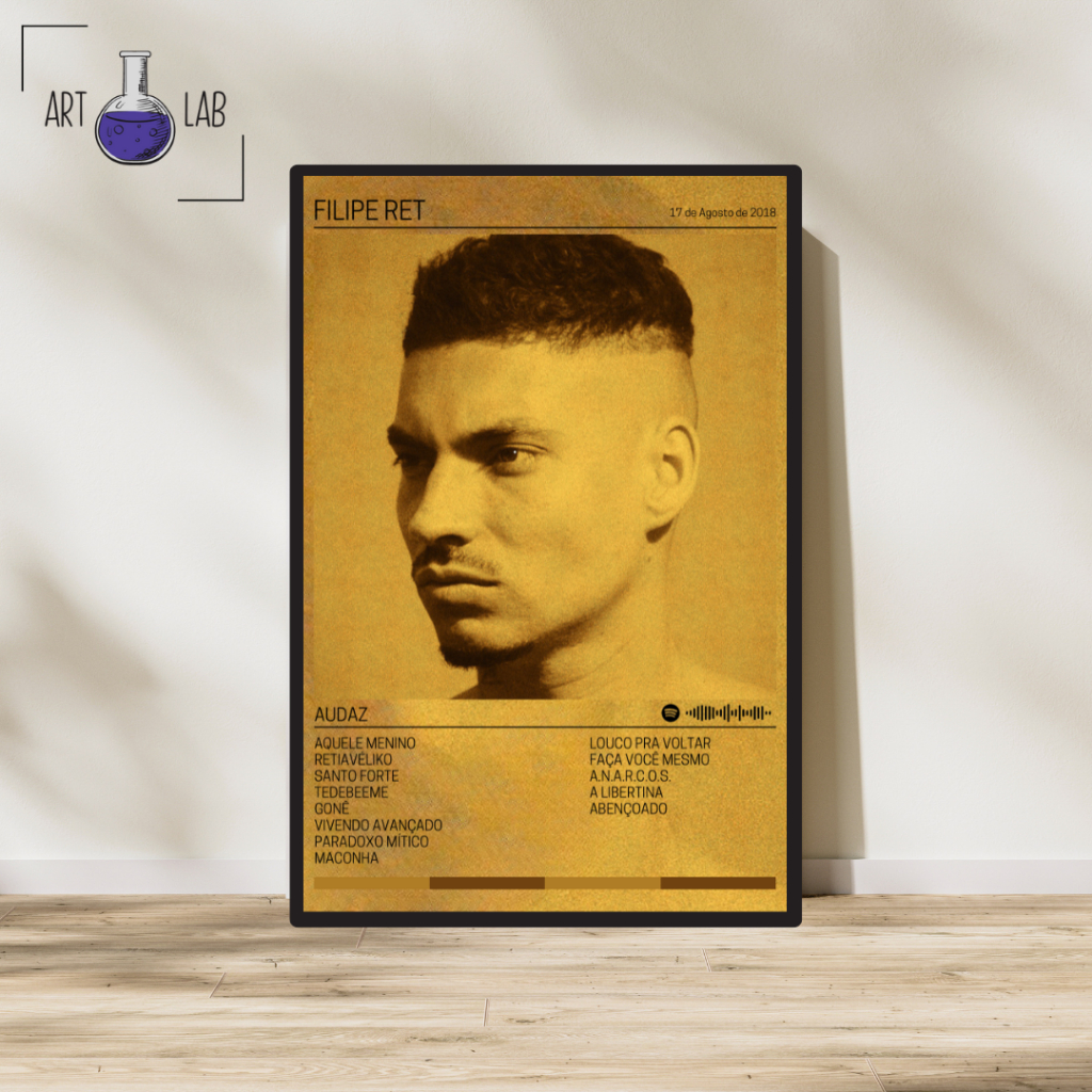 Quadro decorativo álbum AUDAZ FILIPE RET moldura e vidro spotify