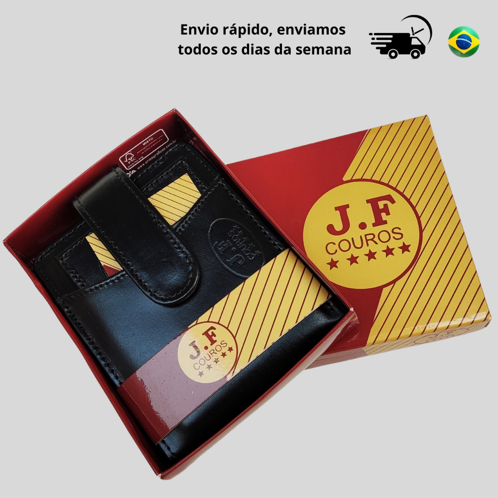 Carteira de Couro Masculina JF Couro 100% Legítimo com Fecho