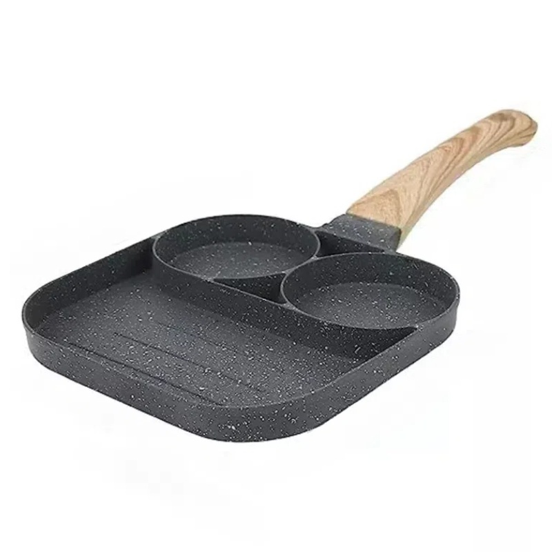 Frigideira Multifuncional Antiaderente 4 em 1/3em 1 Ovos Hambúrguer Omerlete Com Alça De Madeira
