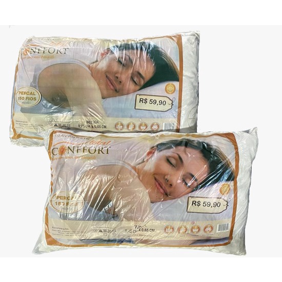 Kit 2 Travesseiro Barato Perfil Alto Firme Confortável Anti-Alérgico 0,45x0,68cm 150 Fios Percal