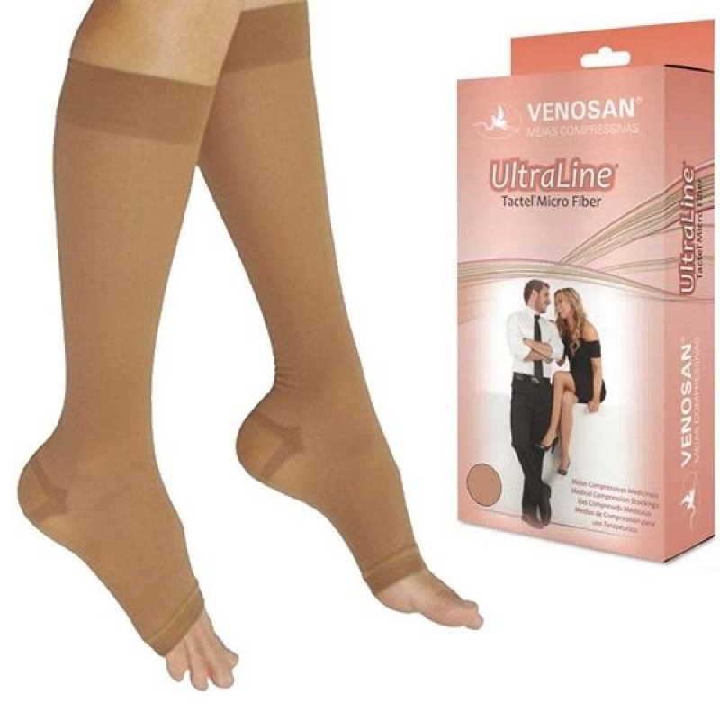 Meia Compressiva Ultraline 4000 3/4 AD 20-30 Mmhg Pé Aberto Sem Ponteira Compressiva Venosan Tactel Efeito Climatico