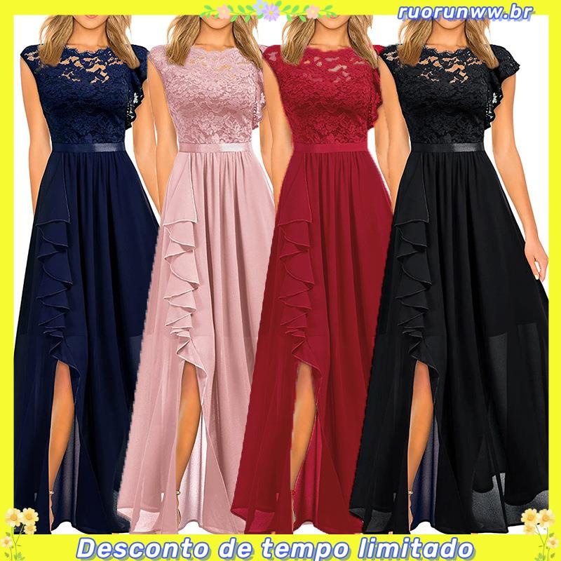 Vestido Noite Feminino De Renda Sexy Primavera Verão Sólido De Cintura Alta Festa Longa