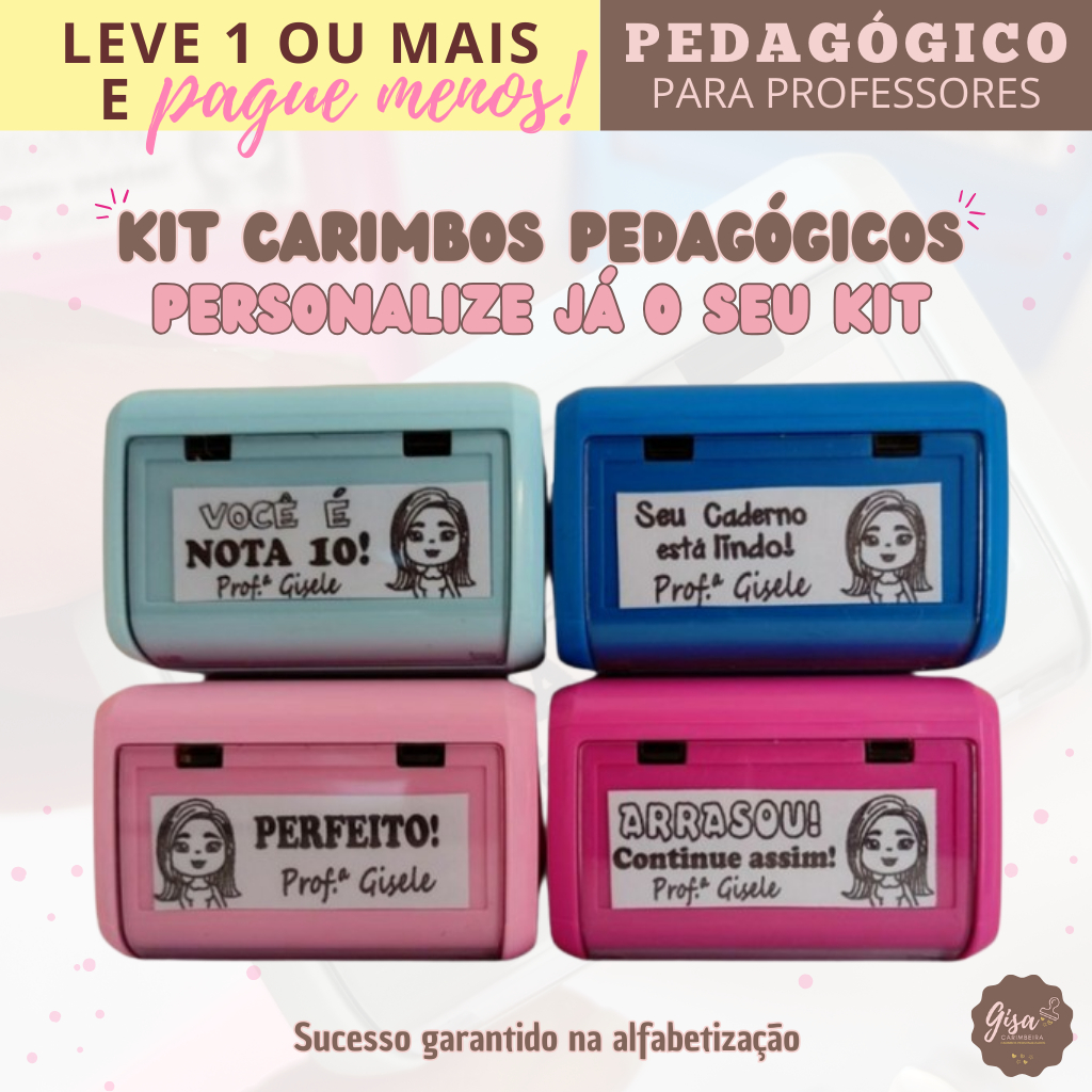 KIT 5 CARIMBOS PEDAGÓGICOS + NECESSAIRE CARIMBO PERSONALIZADO PROFESSOR EDUCAÇÃO ESCOLA INFANTIL