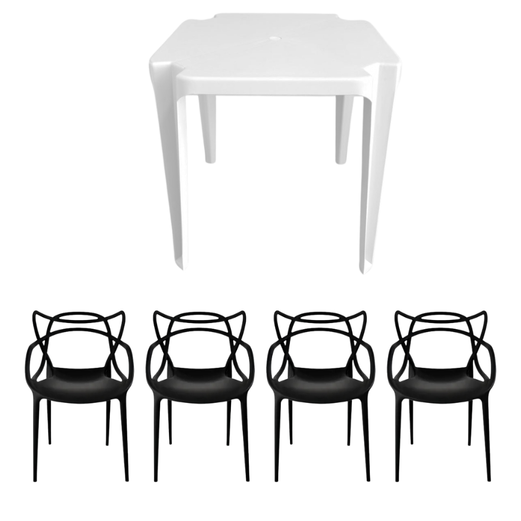 Kit 1 Mesa De Plástico Quadrada + Kit 4 Cadeiras Allegra Jantar Restaurante Bar