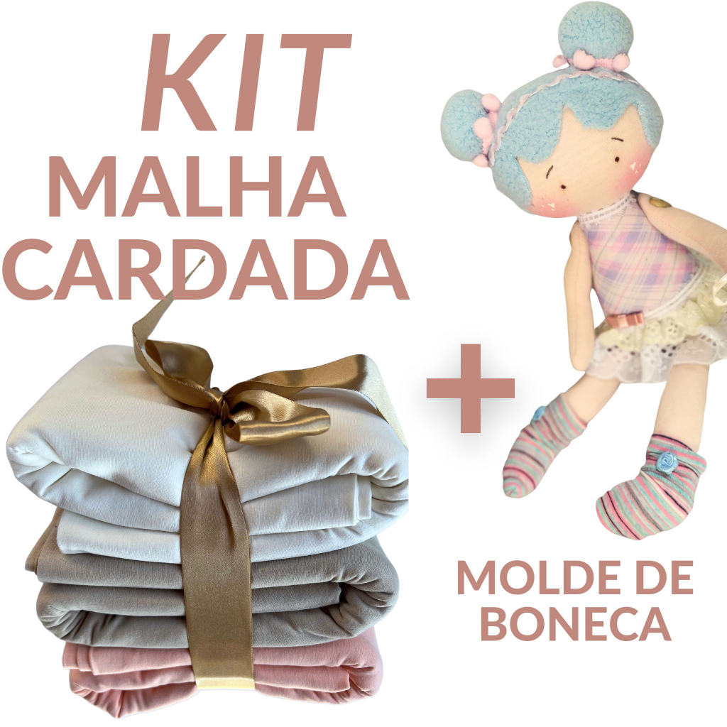 KIT DE MALHA CARDADA 3 CORES (50x120CM CADA COR) TECIDO PARA CORPO DE BONECA E ENXOVAL DE BEBÊ