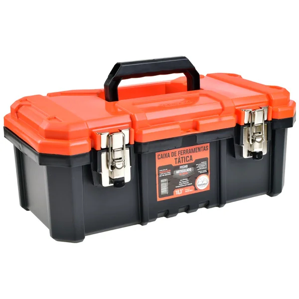 Caixa Ferramentas Plástica Fecho Articulado Reforçado Metal Tática Laranja 18,3" - Metasul,
