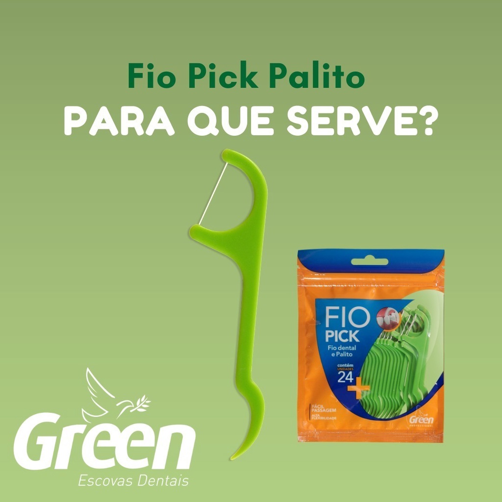 Fio Dental Pick Palito / Facil De Usar Em Criança Adulto, 24 Unid - Green