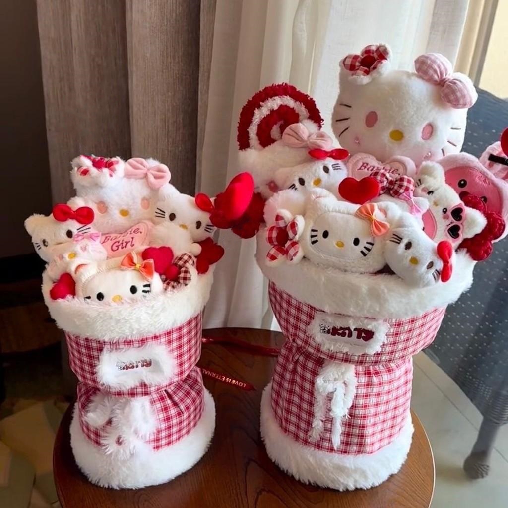 Desenho Animado Sanrio Hello Kitty Kuromi Cinnamoroll My Melody Plush Doll Bouquet De Bonecas Brinquedos Saco De Presente Dia Dos Namorados Xmas Girl Friend Gifts