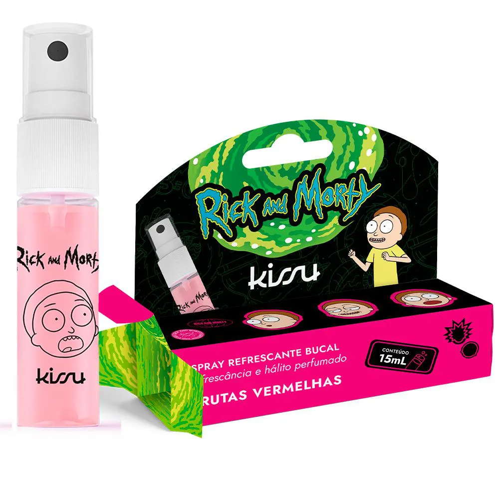 Kit 2x Spray Aromatizante e Refrescante Bucal KISSU - Ricky & Morty - 1 Frutas Vermelhas e 1 Hortelã