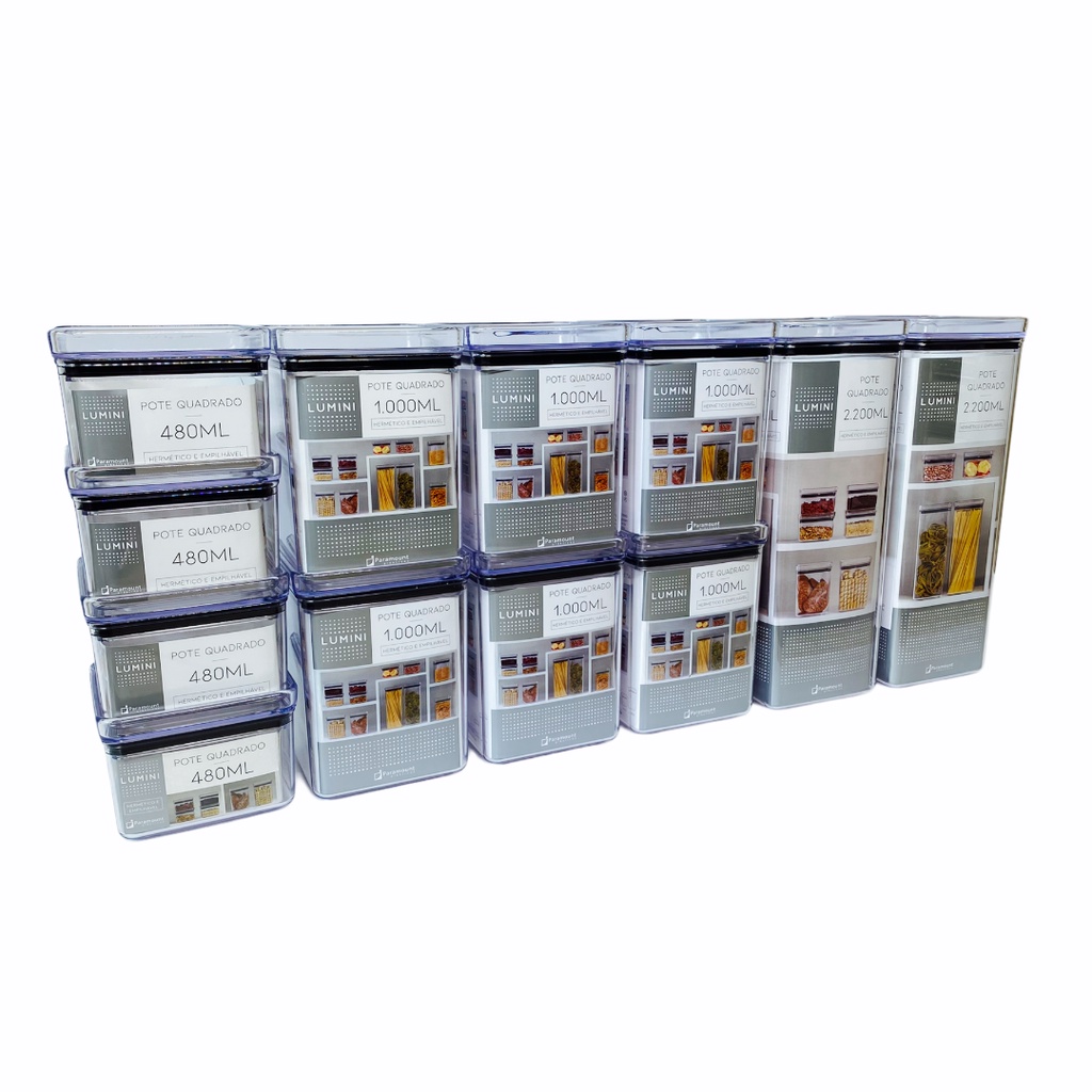 Kit Pote Hermético Quadrado Para Alimentos Dispensa Acrílico Paramount Lumini