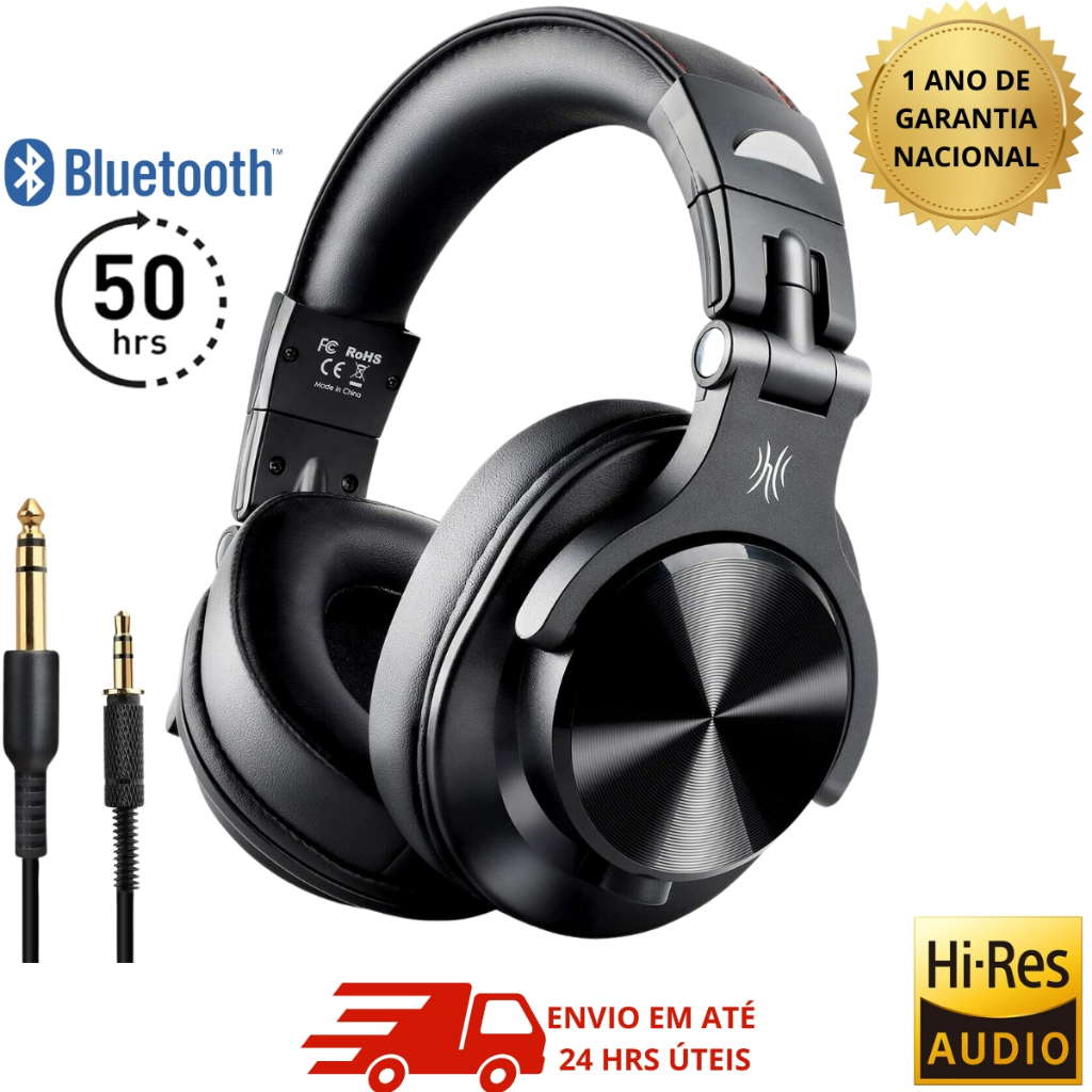 Fone de ouvido Oneodio Bluetooth Profissional A70 Original Estéreo Até 50 Horas Sem fio ou Cabo P2 e P10 fone de gravação profissional Headfone Estúdio Monitor Console PS4 PS5 Xbox PC Notebook Wireless Com Microfone
