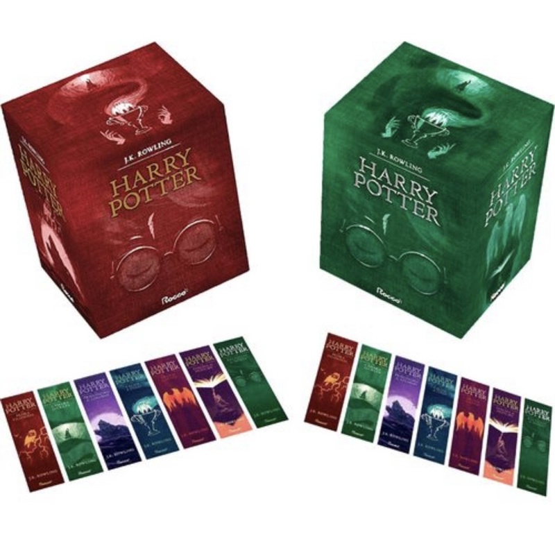 Box Harry Potter Premium Verde/Vermelho 7 Livros em Capa Dura + Marcadores