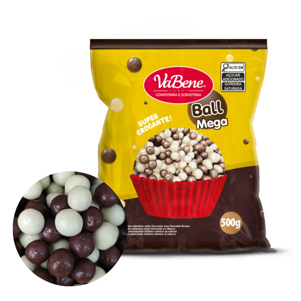 Cereal Ball Mega Com Cobertura Chocolate Ao Leite e Branco 500g P/ Bolo Sorvete Vabene