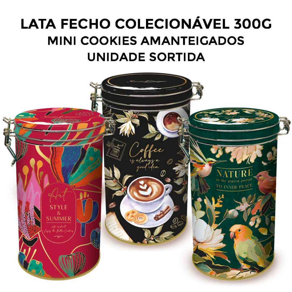Lata Lembrança Presente Colecionável Mini Biscoitos Amanteigados Fecho 300g Unidade - Santa Edwiges