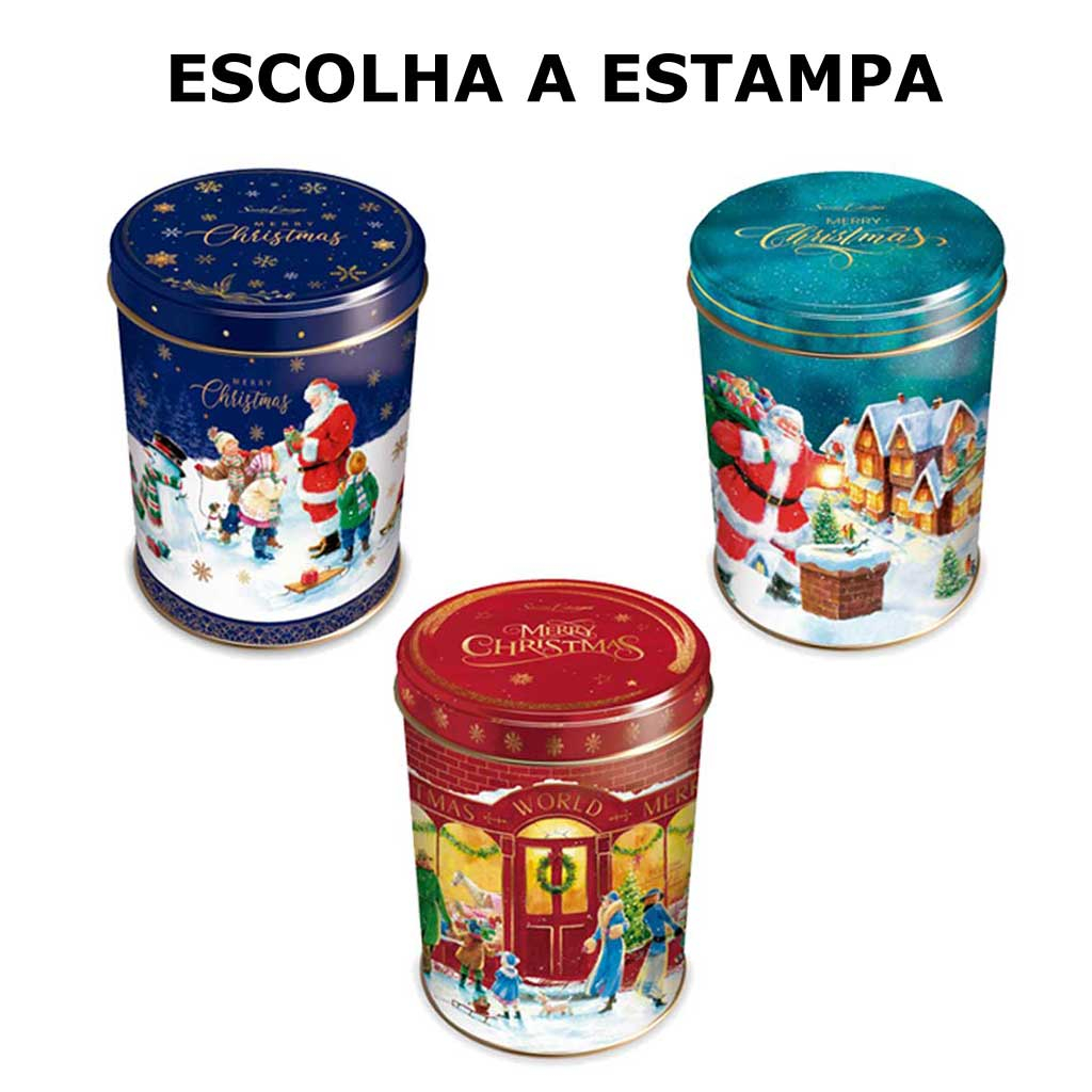 Lata Presente Lembrança Natal com Biscoito Butter Cookies 100g Santa Edwiges - Escolha sua Estampa