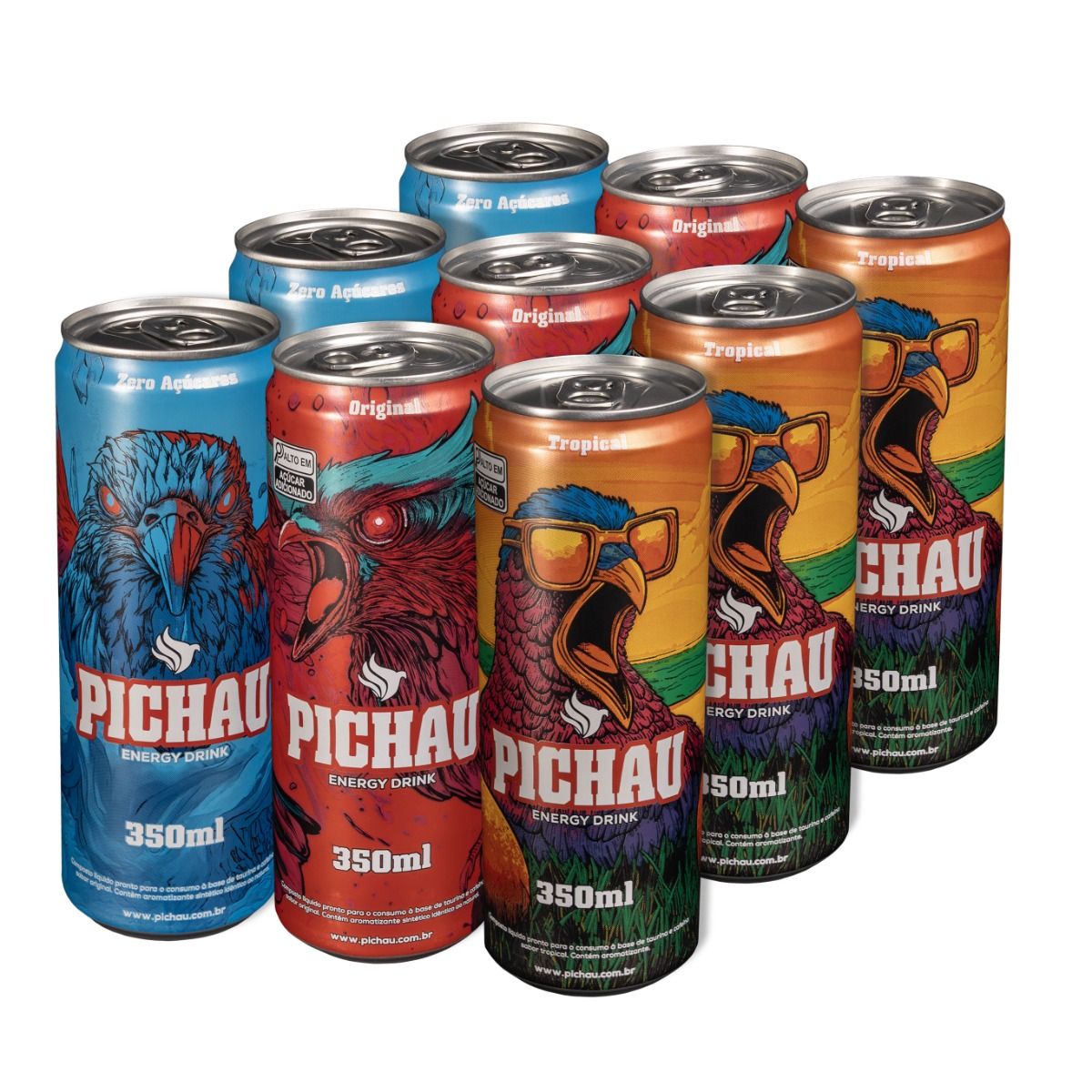 Combo Energético Pichau, 3 Sabores, Original + Tropical + Zero, 350ml, Com 9 unidades