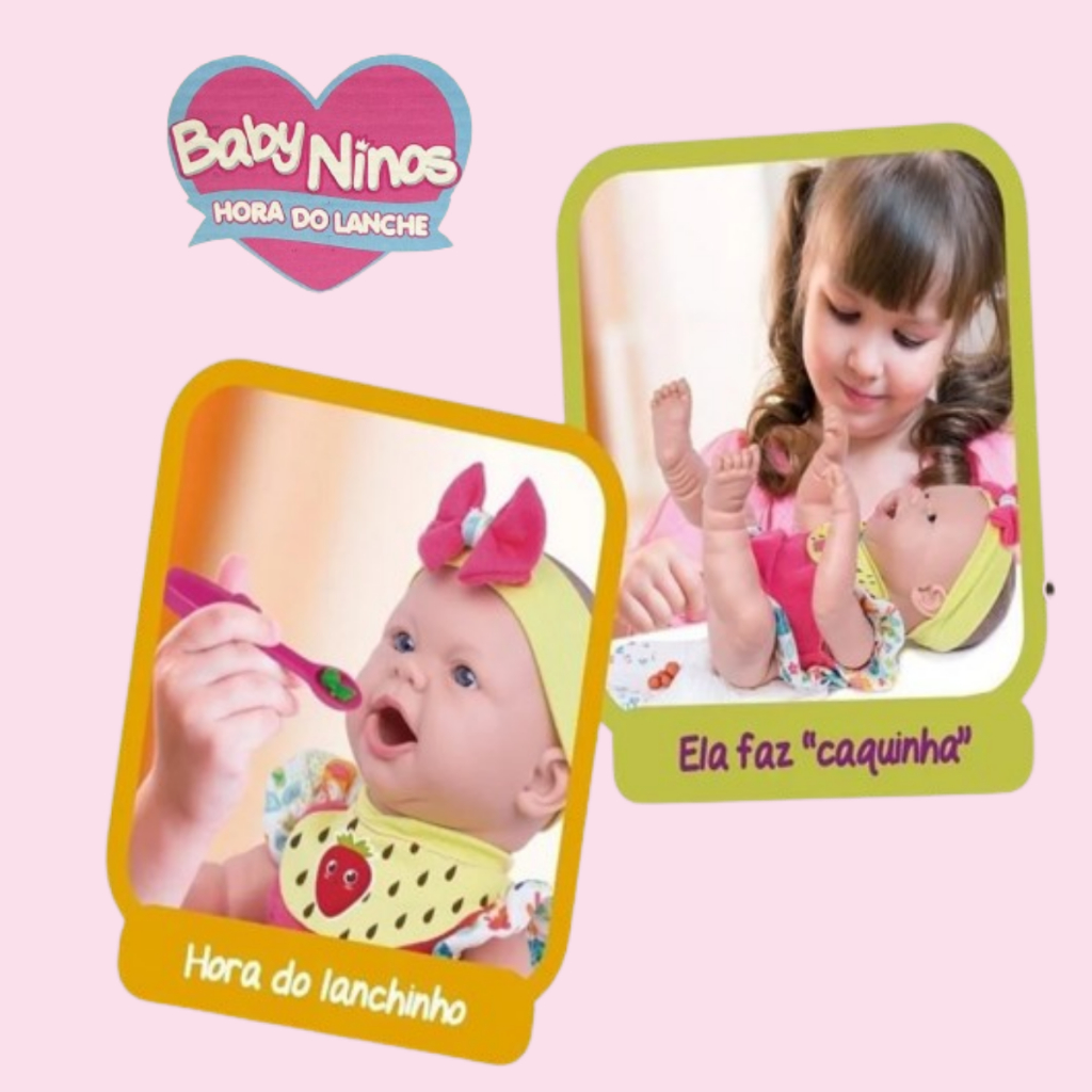 Boneca Baby NINOS Hora do Lanchinho Faz Coco Caquinha Faz Cocozinho Hora do Lanche em Vinil Massinha Cotiplás