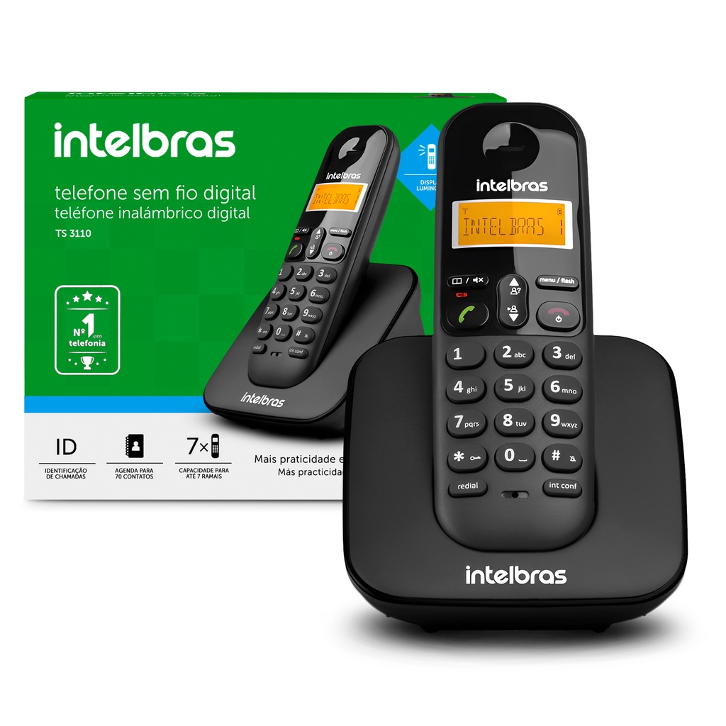 Telefone Sem Fio Intelbras TS3110 Preto - Identificador de Chamadas - Expansível Até 6 Ramais - Agenda - Original Com NF