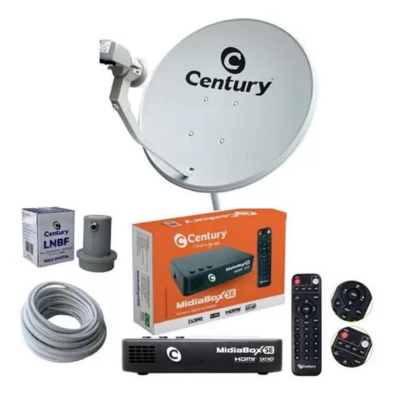 Kit Antena Parabólica Digital Banda Ku C/ Midiabox SE 5G Century LNBF E CABO
