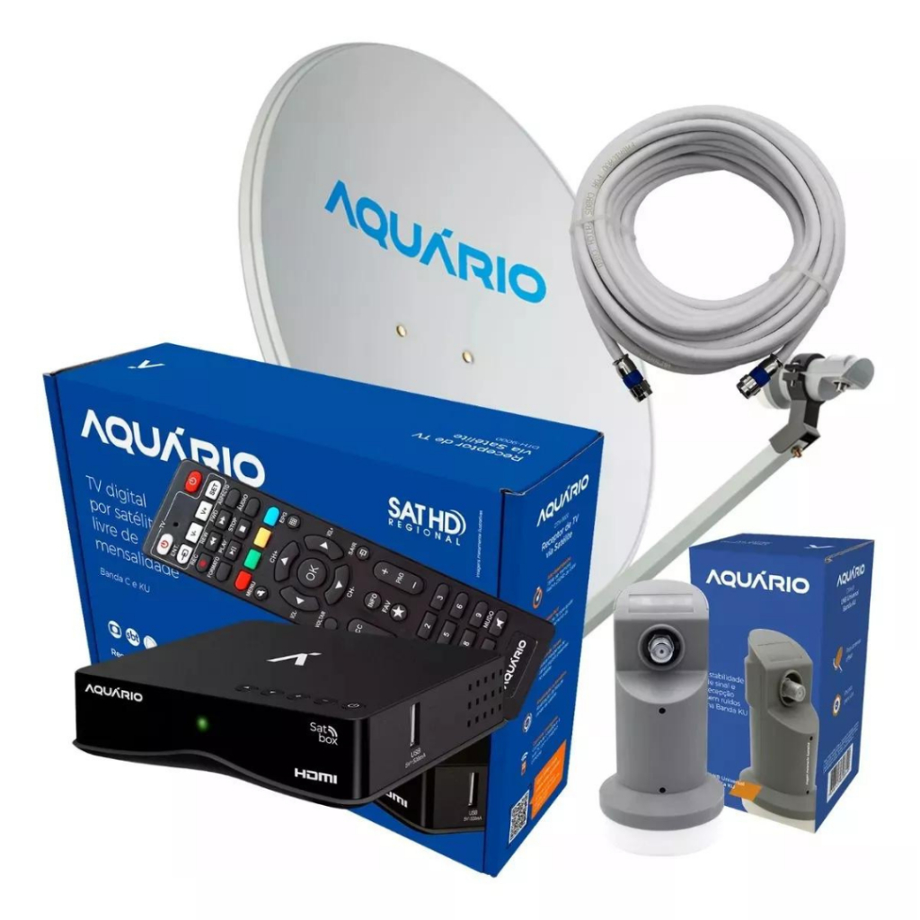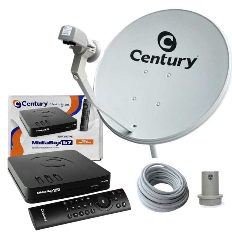 Kit Antena Parabólica Digital Banda Ku C/ MidiaBox B7 5G Century LNBF e Cabo